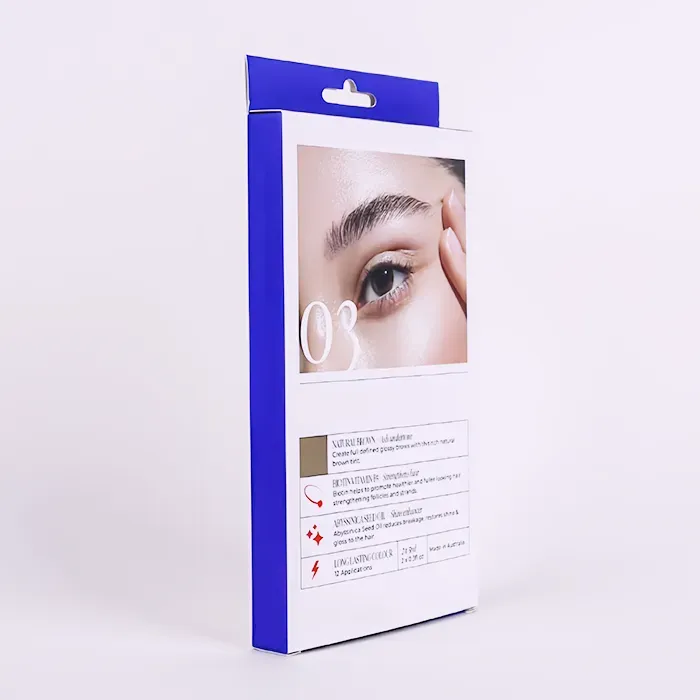 இந்த அச்சிடப்பட்ட Hang Tab Boxs ஆனது Doyoupacks ஆல் மார்க்கெட் பியூட்டி பிராண்டிற்காக வடிவமைக்கப்பட்டு தயாரிக்கப்பட்டது, இது வெகுஜன சந்தை சில்லறை விற்பனை சேனல்களில் வலுவான முன்னிலையில் உள்ளது. எங்கள் தொழிற்சாலை ஆரம்பத்தில் பேக்கேஜிங் கட்டமைப்பை வடிவமைத்தபோது, அதன் விற்பனை காட்சிகளை நாங்கள் கருத்தில் கொண்டோம், மேலும் உள்ளே உள்ள தயாரிப்பு ஒரு புருவ டின்ட் பேனாவாகும். தனிப்பயன் தொங்கும் சில்லறை பெட்டிகள் மிகவும் பொருத்தமான தேர்வாகும், ஏனெனில் இது மருந்துக் கடைகள் மற்றும் அழகு சார்ந்த கடைகள் உட்பட சில்லறை சங்கிலிகளில் ஒரு கொக்கியில் தொங்கவிடப்படுவதற்கு ஏற்றது. கூடுதலாக, நிலையான சுமை தாங்கும் திறன் மற்றும் இரட்டை முனை திறப்பு வடிவமைப்பு, ஐப்ரோ டின்ட் பேனாக்கள் போன்ற இலகுரக, பல உருப்படிகளை பேக்கேஜிங் செய்வதற்கு ஏற்றதாக அமைகிறது.