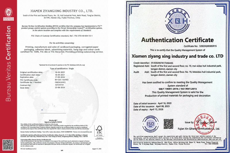 ப: எங்களிடம் FSC, FDA, SGS, VOC மற்றும் RoHS, 94/62/EC மற்றும் US TPCH போன்ற சுற்றுச்சூழல் விதிமுறைகளுக்கு இணங்குகிறோம். எங்கள் தொழிற்சாலை ISO9001 சான்றிதழைக் கொண்டுள்ளது, இது ஒரு முன்னணி சர்வதேச பேக்கேஜிங் சப்ளையர் மற்றும் ஏற்றுமதியாளராக உள்ளது.